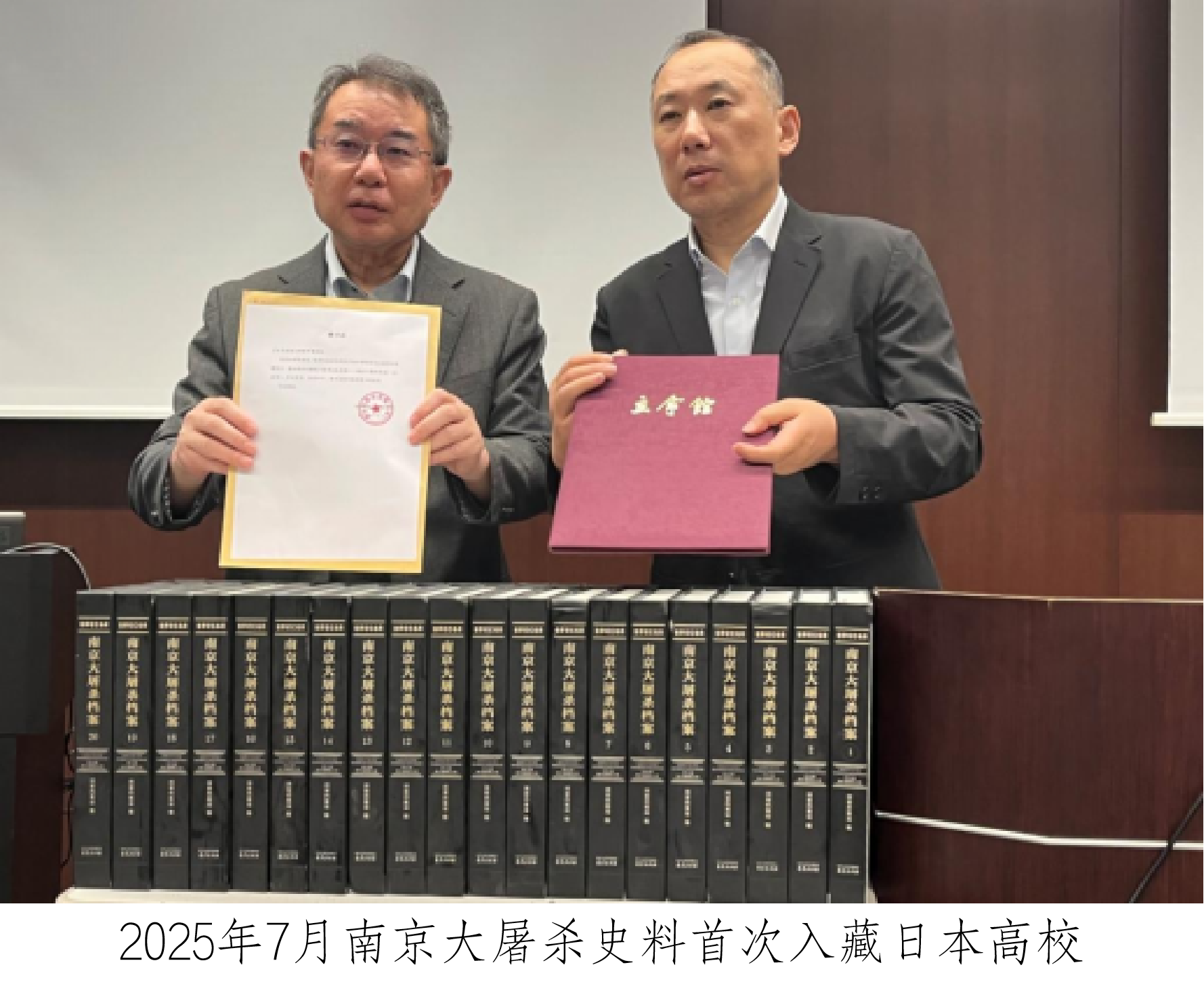 自2014年起,我馆便执着地将展览办往日本,那片曾加害、却也需共同反思的土地。今年7月,《南京大屠杀史实展》于京都举行。我们更受南京出版社委托,将全套20卷《南京大屠杀档案》赠予日本立命馆大学,这不是简单的馈赠,而是让沉默的档案发出声音,用铁证戳破日本信息茧房。央视新闻、团结报等媒体的广泛报道,让这段历史穿透时空,触达更多心灵。我们始终相信,媒体是塑造公共记忆的雕塑家,其力量在于让真实的光,照进被刻意遮蔽的角落。