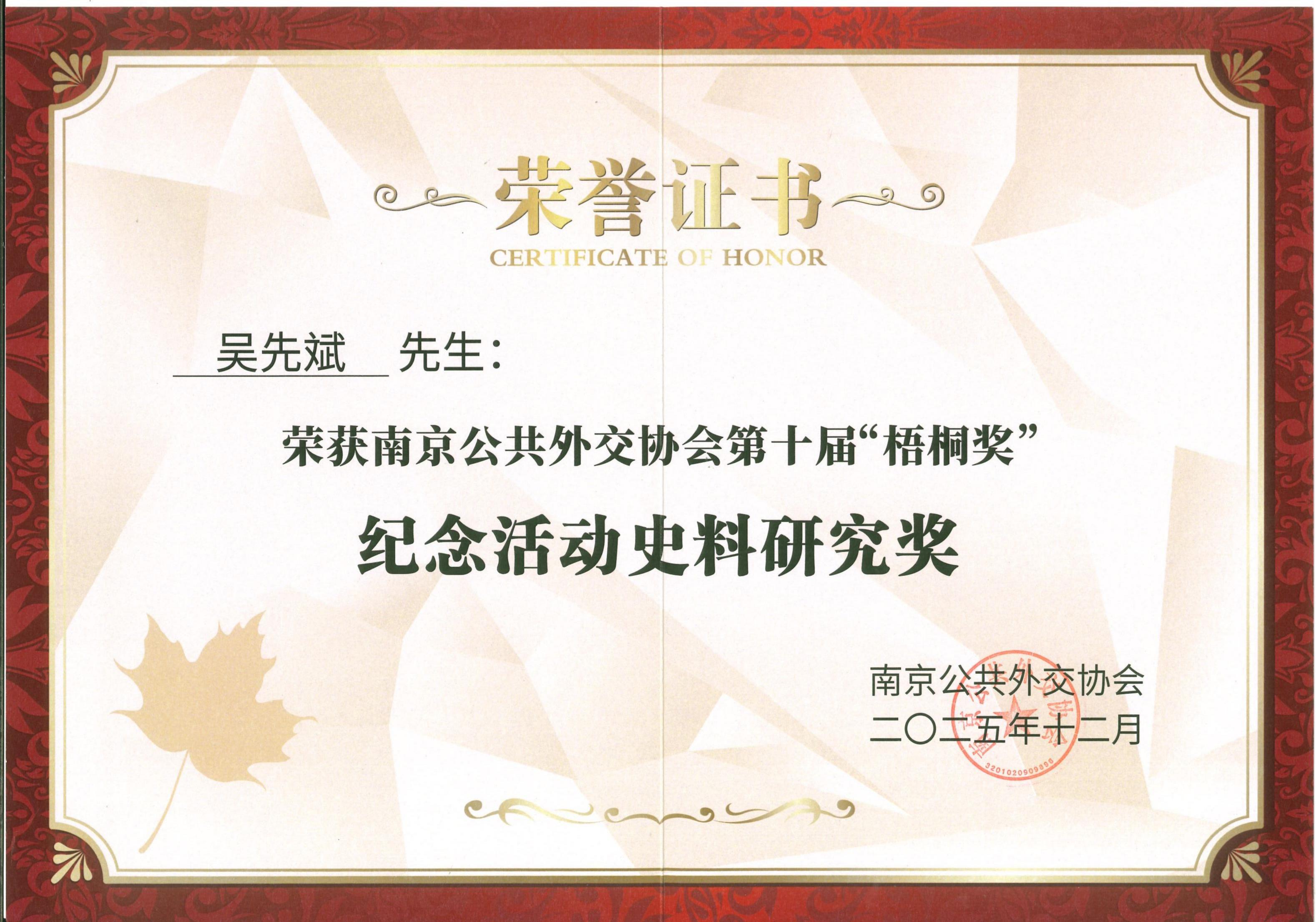 2025年,我馆始终绷紧“双安全”这根弦,确保永远站稳人民立场。这一年,我馆参加全国馆校合作联盟合作年会,在馆校协同共育时代新人学术研讨会上受邀作为点评嘉宾。12月参加中国传媒大学口述历史周诸暨专场,馆长吴先斌作《“两忆”馆长的自述》的演讲。12月27日,我馆获南京公共外交协会第十届“梧桐奖”。
