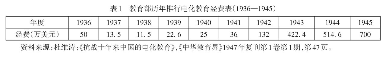 在电影教育逐步推广的同时,播音教育也得到了同步发展。播音较之书面宣传有更为广阔的群众基础。因为当时文盲众多,不识字的民众可以通过广播畅通了解国家大事,接受教育和熏陶,且收音机较电影放映机成本更低,更有利于固定持久地开展教育。正如西迁至重庆的江苏省立联合中学致教育部的呈中所谓,“无线电播音不仅有利于社会教育且有便于抗战宣传”“本校校址位于重庆南岸,收音时亦可使附近民众增长抗战意识”,因而播音教育在抗战时期成为国民政府电化教育的重要内容。
