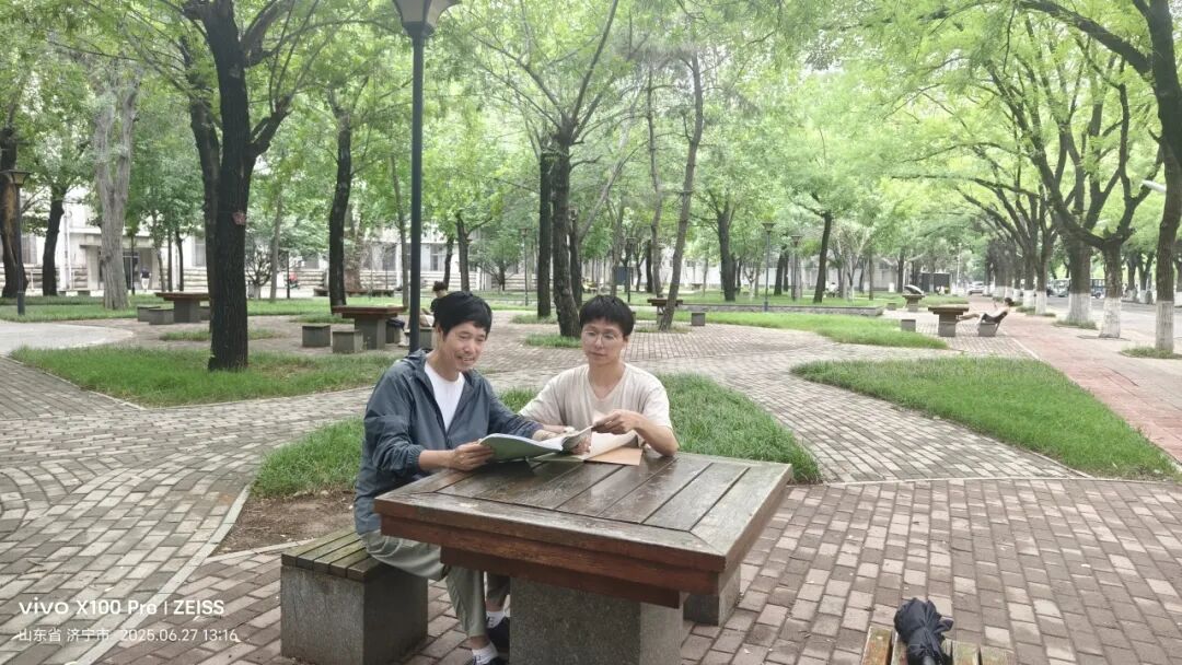 曲阜师范大学历史文化学院教授赵文亮(左)、曲阜师范大学历史文化学院博士研究生刘文庆(右)